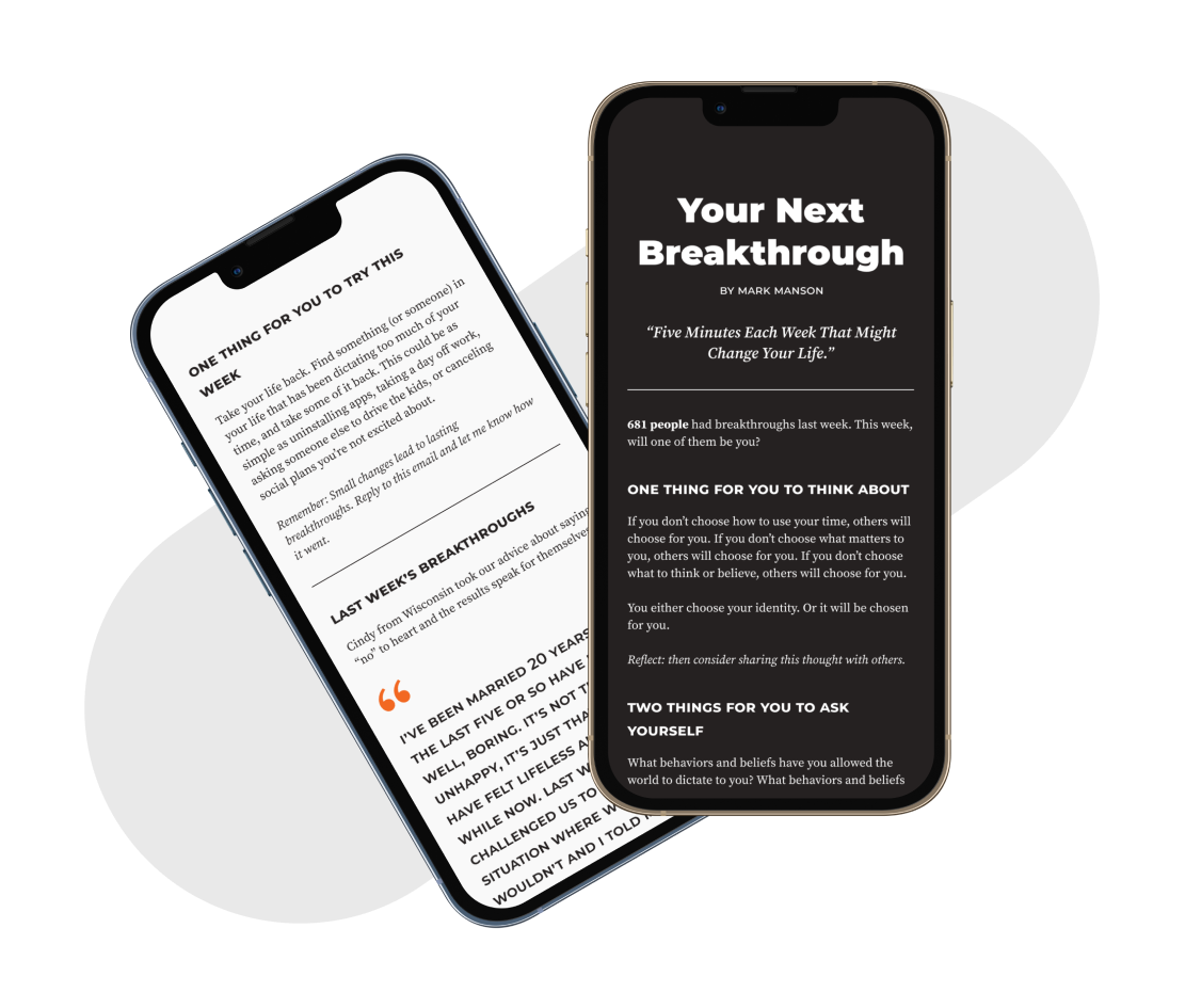Enter your email address below to sign up for my free newsletter, Your Next Breakthrough. Each week, you’ll receive a few prompts and exercises designed to create your next breakthrough. No fluff, no filler, no BS. Just five minutes each week that might change your life.