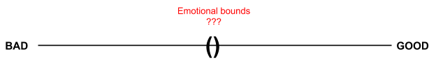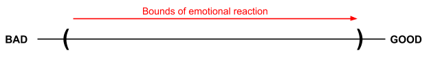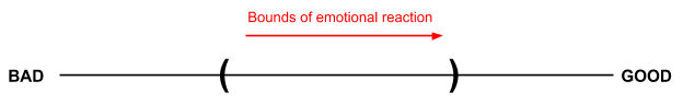 Imagine our emotional reactions as occurring on a spectrum, bad on the left, good on the right.