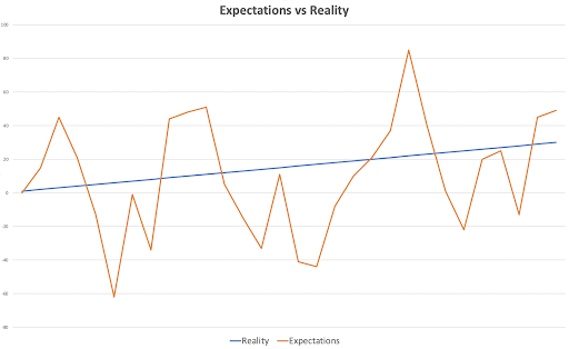 If you graphed my expectations at the time versus reality, it would have looked something like this: